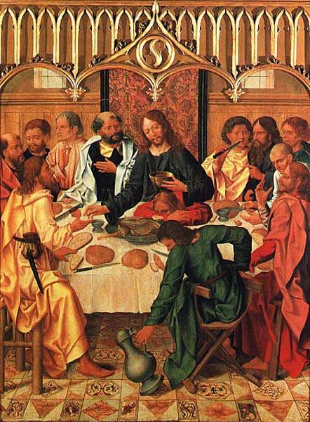 "O Novo Testamento conta que Jesus, antevendo a morte, convocou os 12 apóstolos para sua última ceia. A cerimônia coincidiu com o Seder, celebrado no primeiro dia do Pessach, a Páscoa hebraica, que inclui uma festiva refeição à noite. Sendo judeu, o fundador do cristianismo quis comemorá-la, atribuindo-lhe significado especial. O Novo Testamento não fornece grandes detalhes, mas se supõe terem sido respeitados os ritos tradicionais e a habitual recordação do Êxodo (saída dos hebreus do Egito). Na última ceia, Jesus predisse a traição de um dos apóstolos, Judas Iscariotes, e instituiu o sacramento crucial da Eucaristia. O acontecimento supremo foi descrito nos Evangelhos de São Mateus, São Marcos e São Lucas. São Paulo também se refere a ele na Primeira Epístola aos Coríntios. São Lucas conta que Pedro e João foram incumbidos de organizá-la. Não há referência sobre o endereço, em Jerusalém, no qual transcorreu a derradeira refeição de Jesus. Lucas diz apenas que foi em uma grande sala mobiliada, localizada no andar superior de uma casa. Entretanto, a tradição dos ortodoxos sírios sustenta ter ocorrido na casa da mãe de Marcos, uma das seis Marias citadas no Novo Testamento. Atualmente, ergue-se no lugar a Igreja de São Marcos, nas imediações da Porta de Jafa.